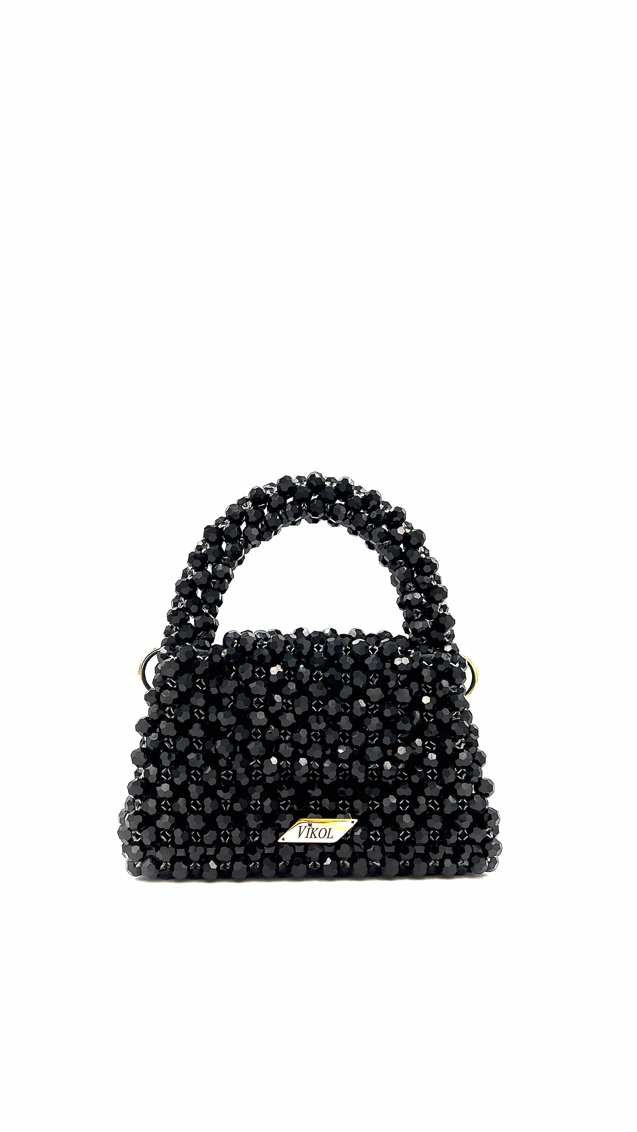 Torebka została wykonana ze szklanych, fasetowanych koralików, które pięknie odbijają światło, tworząc subtelny, elegancki blask. Wnętrze wykończone jest w 100% naturalną bawełną, ozdobioną satynową lamówką, która dodaje całości wyrafinowanego charakteru. Całość uzupełniają trwałe karabińczyki wykonane ze stali nierdzewnej.