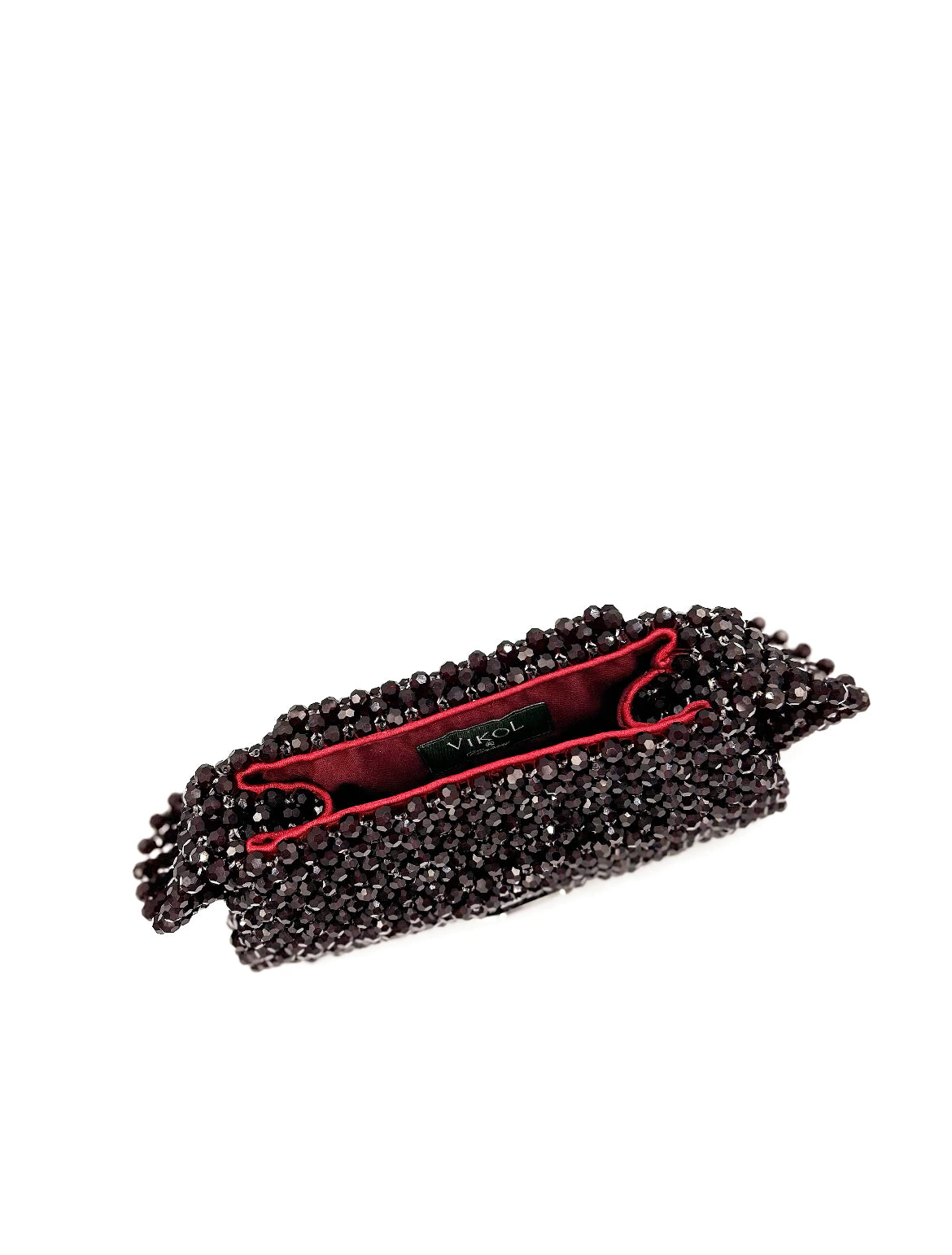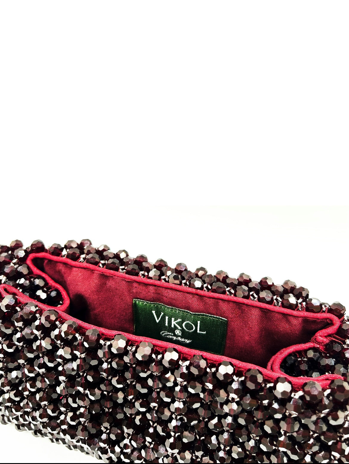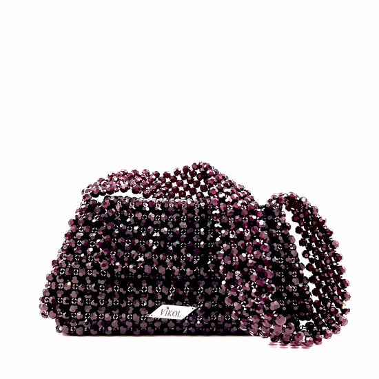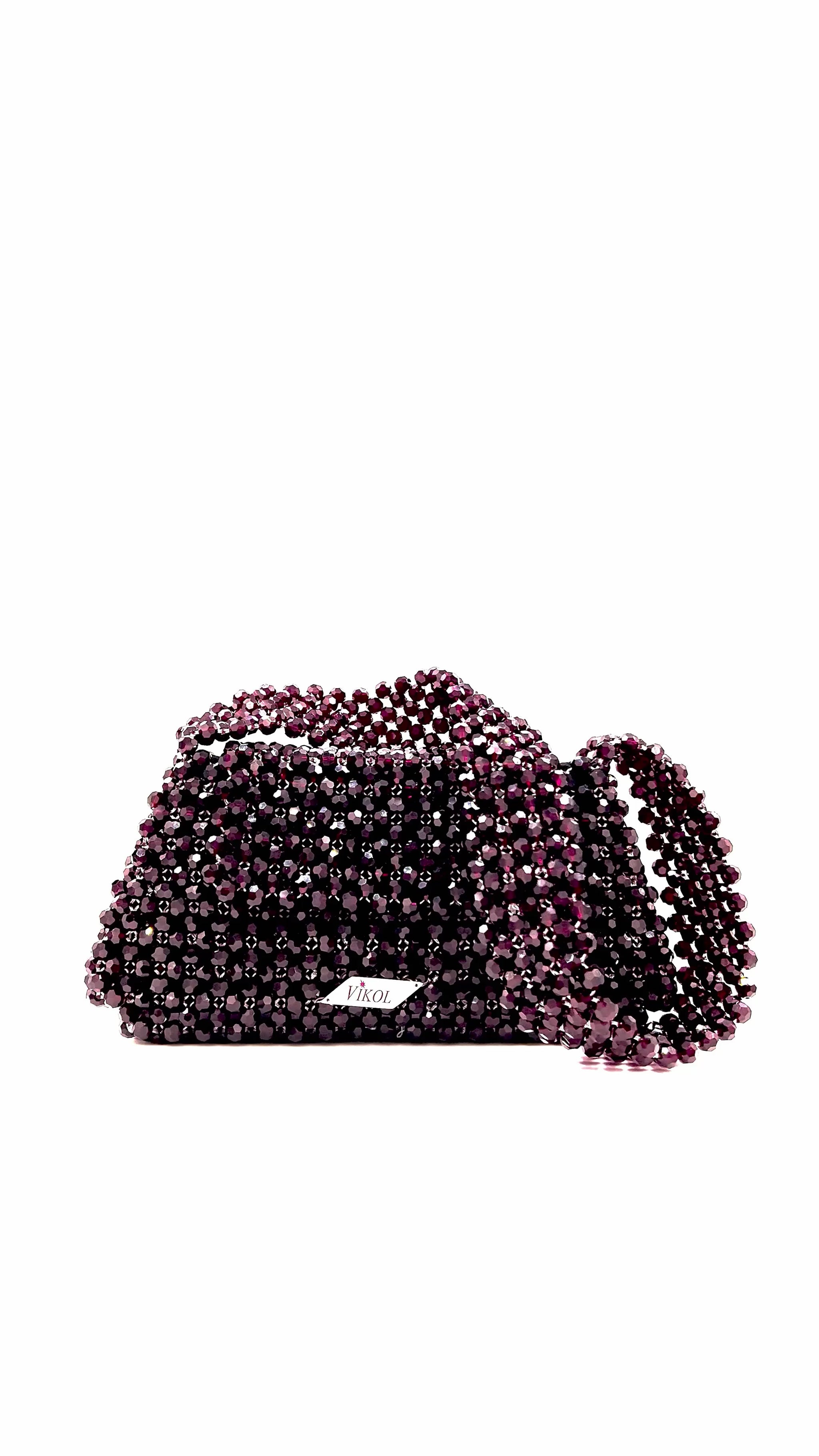 Torebka została wykonana ze szklanych, fasetowanych koralików, które pięknie odbijają światło, tworząc subtelny, elegancki blask. Wnętrze wykończone jest w 100% naturalną bawełną, ozdobioną satynową lamówką, która dodaje całości wyrafinowanego charakteru.
